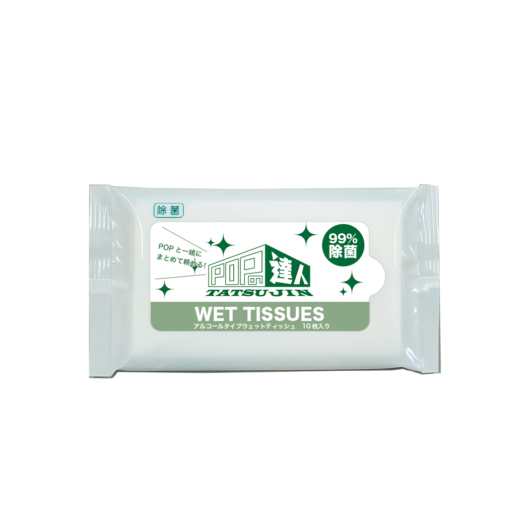 大量配布に最適な、除菌ウェットティッシュ10枚入りのハンディタイプ