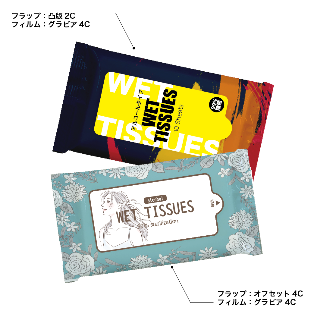 フィルム全面オリジナル印刷ができるウェットティッシュ